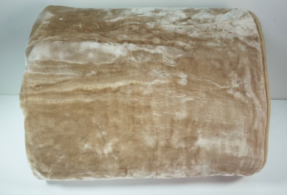 بطانية سادة لون بيج غامق من المخمل والفرو الناعم
