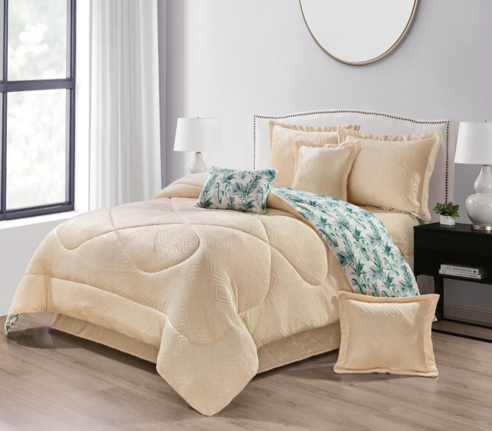 مفرش شتوي نفرين مخمل من ست متكاملة، تُناسب جميع الاحتياجات و تُزين السرير بجمالّ لا يُقارن، مفرش مخمل ذو مواصفات و جودة عالمية مصنوعة من خامة خارجية من مخمل ناعم قصير فلانيل، و الخامة الداخلية من مخمل ناعم و كما هو معرفة فإن قماش المخمل من أجود أنواع الأقمشة التي توفر الدفء و الاسترخاء في النوم.