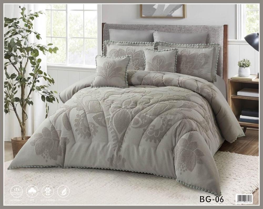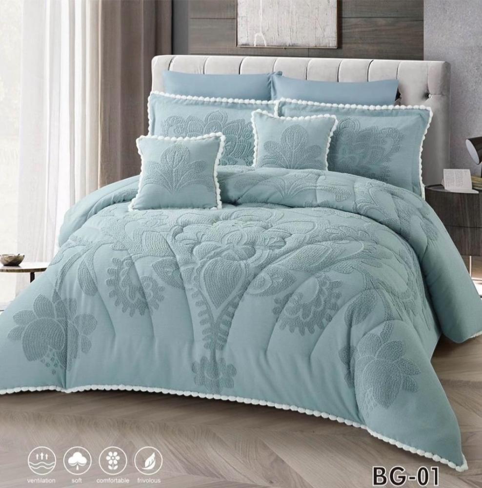 طقم مفرش سرير فاخر أضف لمسة من الفخامة والهدوء لغرفة نومك مع هذا المفرش الأنيق بالونة الجذابة و الناعمة ونقوشه الهادئة. تصميم عصري يناسب جميع الأذواق ويضفي أجواءً دافئة ومريحة للمكان الخامة: أقمشة عالية الجودة، ناعمة الملمس، مريحة في الاستخدام، وسهلة العناية.